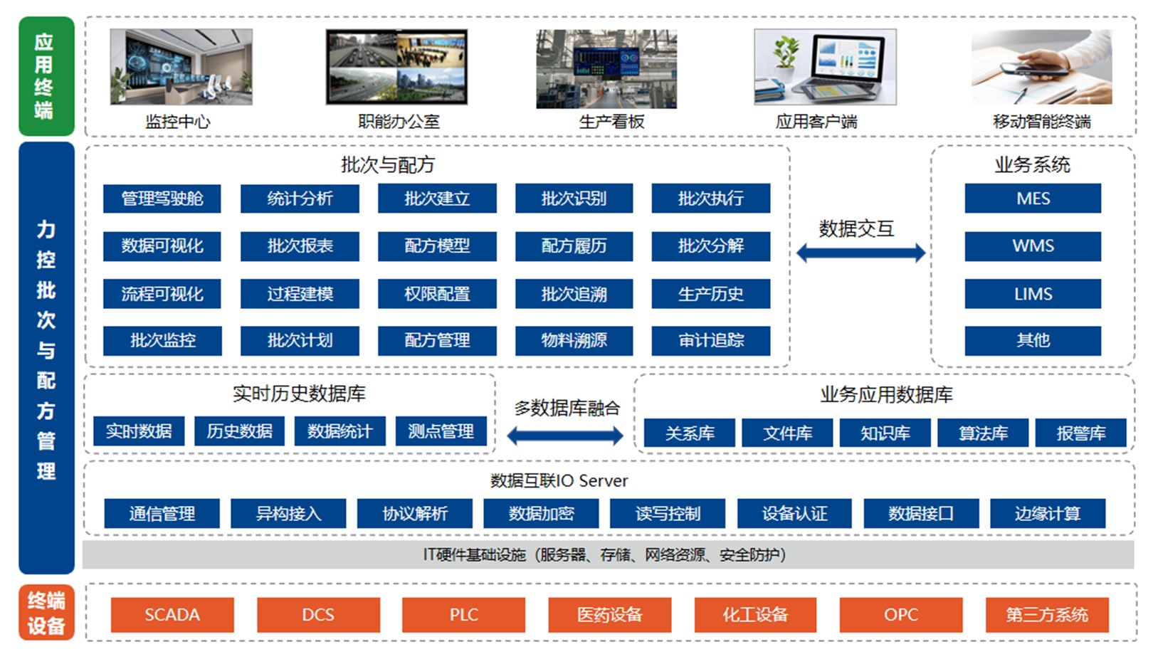 力控批次與配方管理系統(tǒng),基于批次過程數(shù)據(jù)采集,自動(dòng)生成批次報(bào)表、過程數(shù)據(jù)統(tǒng)計(jì)分析,實(shí)現(xiàn)批次質(zhì)量追溯。與力控工業(yè)App及SCADA系統(tǒng)無縫融合,可與其他業(yè)務(wù)系統(tǒng)如MES、LIMS、WMS等系統(tǒng)集成,具備強(qiáng)大的配方管理、計(jì)劃分派、批次自動(dòng)控制、物料管理等功能,根據(jù)生產(chǎn)需求,靈活配置生產(chǎn)配方,精確控制每個(gè)批次的生產(chǎn)過程,確保產(chǎn)品一致性,提高生產(chǎn)效率。