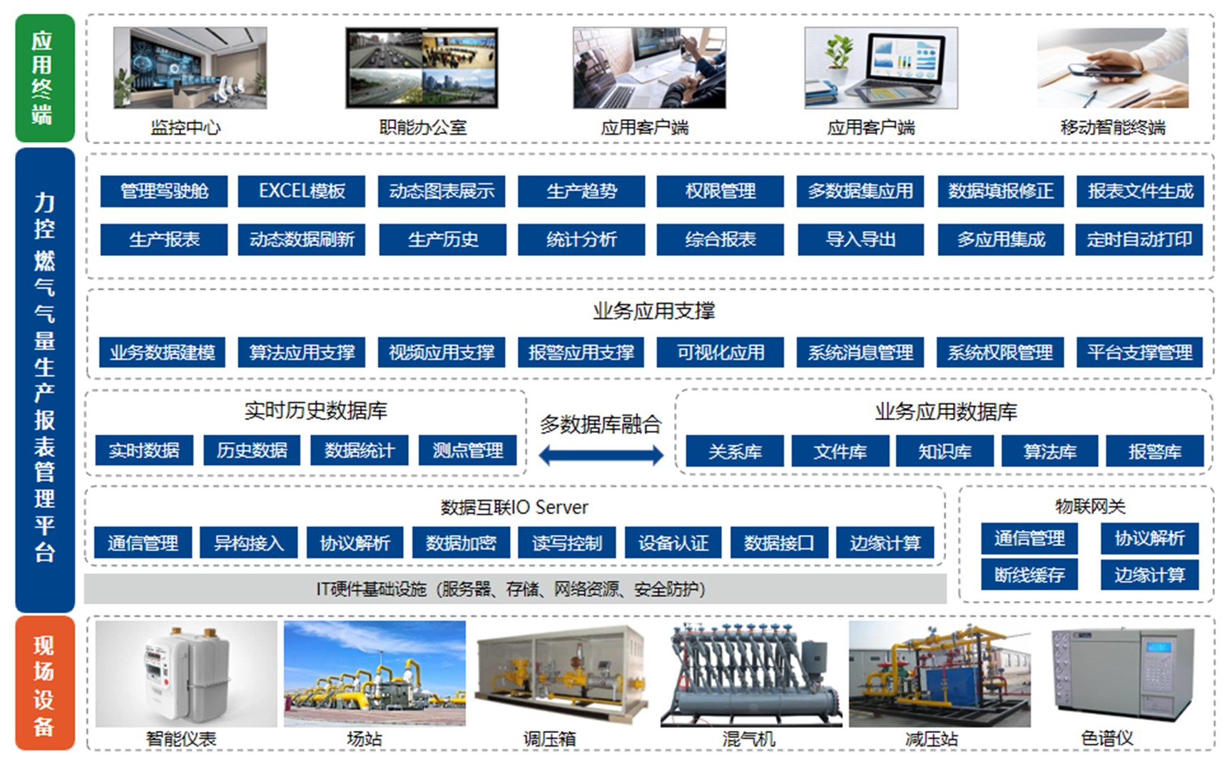 基于力控燃氣氣量生產(chǎn)報表管理平臺、企業(yè)實時歷史數(shù)據(jù)庫pSpace形成解決方案,功能包括資產(chǎn)模型的建立,場站設(shè)備臺賬生成,設(shè)備運行監(jiān)控及報警處理、核查管理、智能報表等,實現(xiàn)天然氣氣質(zhì)數(shù)據(jù)全面采集、存儲以及相關(guān)業(yè)務處理和報表統(tǒng)計分析。
