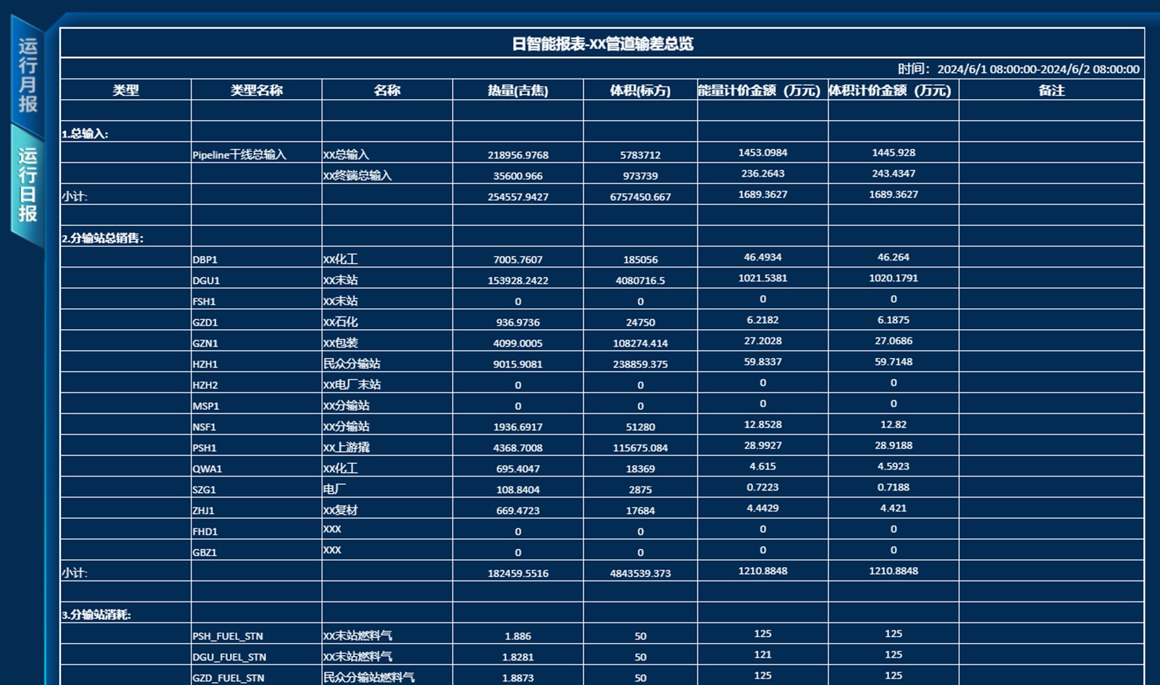 提供日、周、月、年生產(chǎn)智能報表,以及供銷存、輸差分析報表;