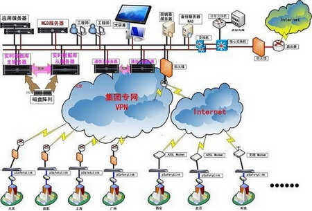由于各站庫地理位置分散,從站庫接入到調(diào)度中心的網(wǎng)絡(luò)通信方式多種多樣。一部分集團(tuán)公司直屬的站庫采用集團(tuán)專網(wǎng),集團(tuán)專網(wǎng)租用電信專線通過VPN實現(xiàn)廣域網(wǎng)傳輸。其它不具備接入集團(tuán)專網(wǎng)的站庫,則采用ADSL、無線等接入方式通過互聯(lián)網(wǎng)將數(shù)據(jù)傳到中心。最終構(gòu)成的整個指揮調(diào)度系統(tǒng)的網(wǎng)絡(luò)結(jié)構(gòu)非常復(fù)雜。聯(lián)網(wǎng)后,將導(dǎo)致各站庫的站控網(wǎng)絡(luò)直接暴露給集團(tuán)專網(wǎng)或互聯(lián)網(wǎng)。該集團(tuán)專網(wǎng)是面向集團(tuán)內(nèi)各地分公司的辦公網(wǎng)絡(luò),應(yīng)用數(shù)據(jù)多樣而復(fù)雜;互聯(lián)網(wǎng)則更是一個開放網(wǎng)絡(luò)。而由各種DCS、PLC、RTU、儀表等控制系統(tǒng)組成的站控系統(tǒng)負(fù)責(zé)完成對門站、調(diào)壓站、管網(wǎng)的基礎(chǔ)數(shù)據(jù)采集、控制、聯(lián)鎖保護(hù)等任務(wù),因此,其控制網(wǎng)絡(luò)的安全性非常重要,一旦直接暴露給外網(wǎng),就有可能因受到外網(wǎng)的惡性攻擊、病毒感染而導(dǎo)致控制網(wǎng)絡(luò)阻塞、癱瘓,甚至產(chǎn)生破壞和影響生產(chǎn)的嚴(yán)重后果。