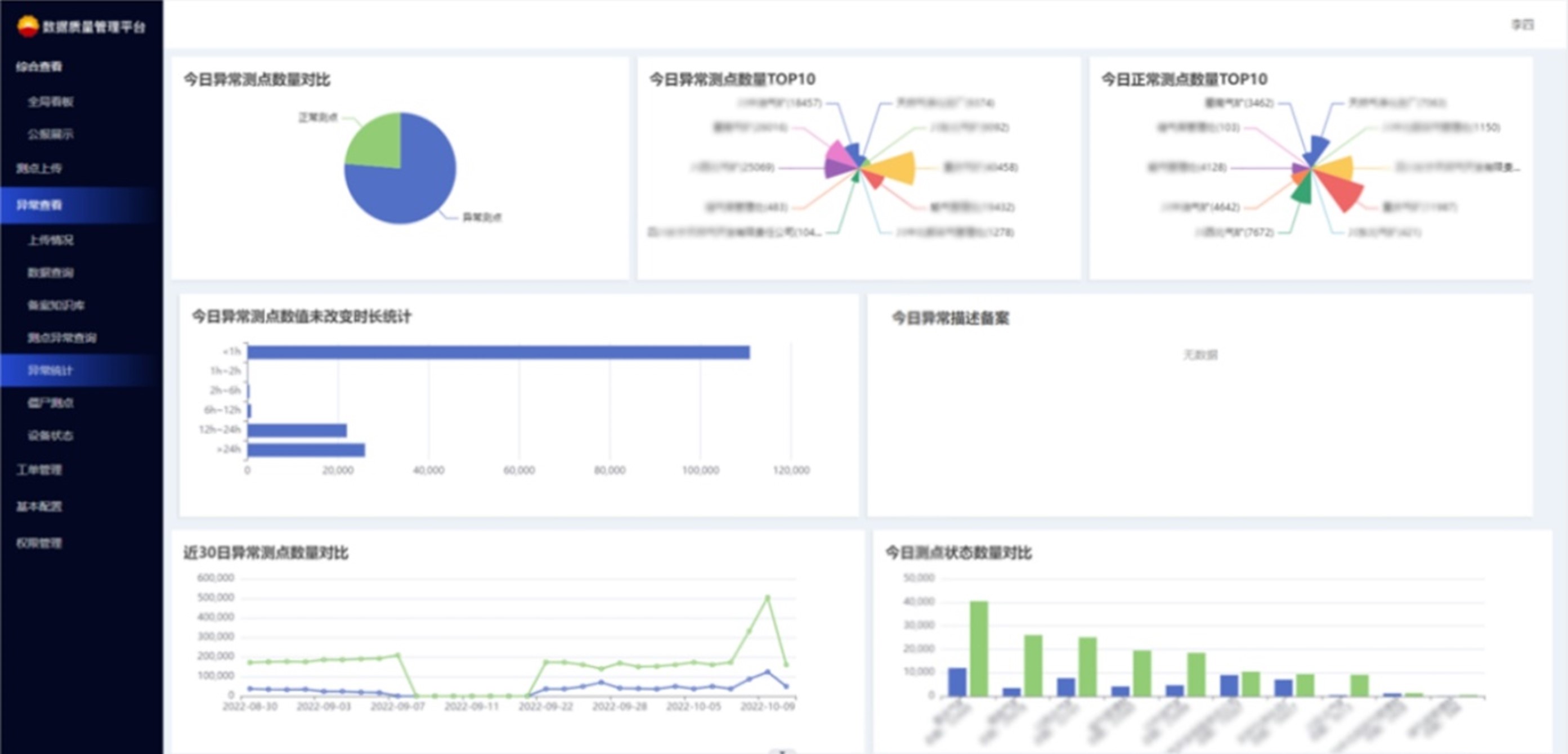 提供測(cè)點(diǎn)合規(guī)性檢查、數(shù)據(jù)異常檢查、僵尸點(diǎn)篩查、通訊狀態(tài)統(tǒng)計(jì)、處理工單等功能。用戶可通過該子系統(tǒng)實(shí)時(shí)查看pSpace數(shù)據(jù)庫(kù)使用狀態(tài)、測(cè)點(diǎn)質(zhì)量狀態(tài),為公司數(shù)據(jù)質(zhì)量考核提供支撐。
