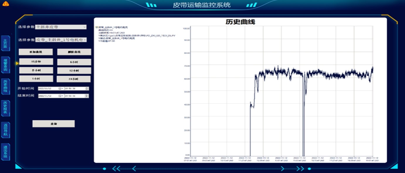 通過(guò)eForceCon 工程師站組態(tài)開(kāi)發(fā),能夠監(jiān)控皮帶、綜采工作面、水倉(cāng)、壓風(fēng)機(jī)等設(shè)備,實(shí)現(xiàn)遠(yuǎn)程操作和歷史曲線查詢等功能。