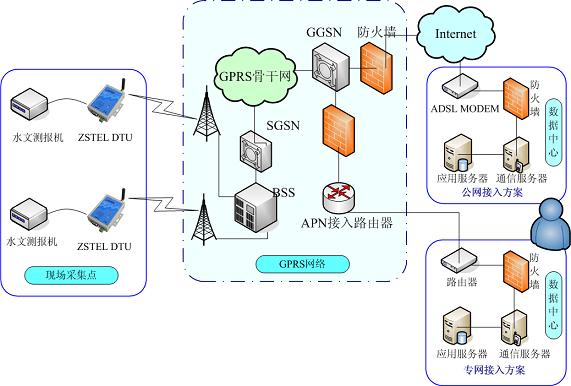遙測站通過各種傳感器檢測水情、工情、雨情、墑情、地理數(shù)據(jù)、用戶數(shù)據(jù)、沿線引水閘、節(jié)制閘、上下游水位、閘門開啟高度、設(shè)備運行狀態(tài)等參數(shù),通過無線網(wǎng)絡(luò)GPRS將現(xiàn)場采集的數(shù)據(jù)傳回控制中心的實時數(shù)據(jù)庫,實現(xiàn)整個灌區(qū)的數(shù)據(jù)共享。