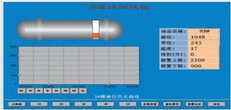 4)歷史數(shù)據(jù)查詢與管理:可以曲線的形式顯示各監(jiān)測參數(shù)隨時間變化的曲線,同時對最大最小值及平均值進(jìn)行顯示。實時計算和顯示油庫油品存量,用棒圖和數(shù)據(jù)表顯示所有油品的即時存量和空容量、體積、質(zhì)量。在無進(jìn)出油品的狀態(tài)下,可判斷油罐有無泄漏。