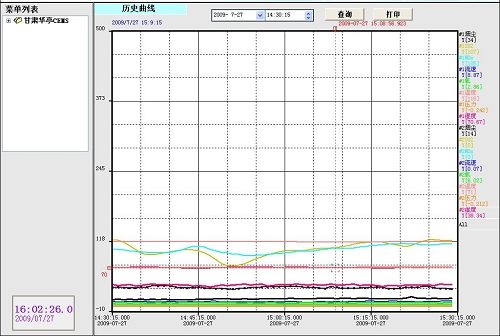 系統(tǒng)可以生成實(shí)時(shí)曲線和歷史曲線。從曲線上可以直觀觀測(cè)到參數(shù)隨時(shí)間的變化,方便對(duì)相關(guān)數(shù)據(jù)進(jìn)行分析。