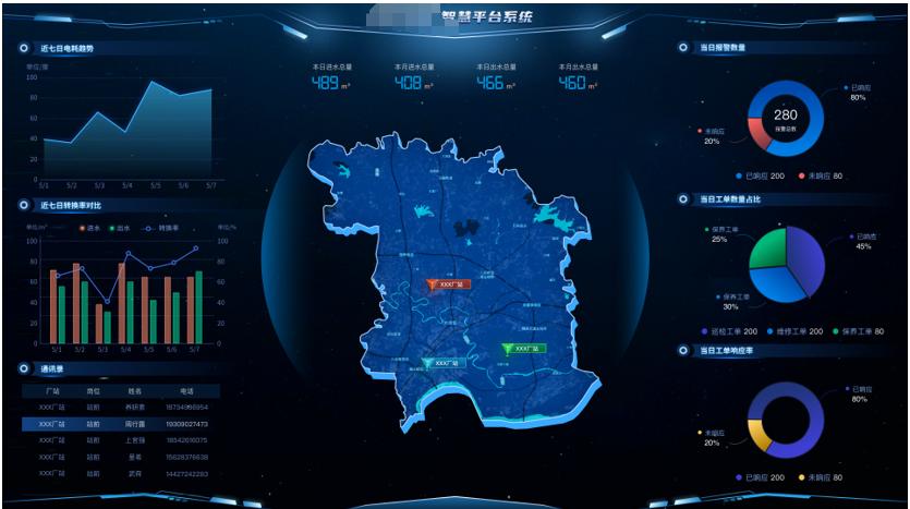 泵站駕駛艙是智慧運(yùn)維系統(tǒng)的中樞,集成了實(shí)時(shí)監(jiān)測、數(shù)據(jù)分析、應(yīng)急指揮等核心功能。設(shè)計(jì)簡潔直觀,大屏幕可展示關(guān)鍵數(shù)據(jù),支持從安全生產(chǎn)、運(yùn)營目標(biāo)、管理KPI等多個(gè)維度進(jìn)行日常運(yùn)行監(jiān)測管理,便于管理者快速捕捉泵站運(yùn)行狀態(tài),并針對突發(fā)事件進(jìn)行應(yīng)急指揮調(diào)度管理。
