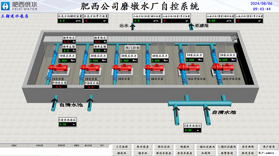 肥西縣磨墩水廠位于肥西縣山南鎮(zhèn),水源地為磨墩水庫(kù),承擔(dān)肥西縣西南部供水任務(wù)。為滿足人口日益增長(zhǎng)帶來(lái)的用水需求,2024年龍河口引水工程投入使用,為磨墩水庫(kù)增加外調(diào)水源。肥西磨墩水廠的多水源供水格局,需要集成水廠的各個(gè)子系統(tǒng),構(gòu)建一體化管理平臺(tái),在提高水源保證率的同時(shí)優(yōu)化完善供水系統(tǒng)。