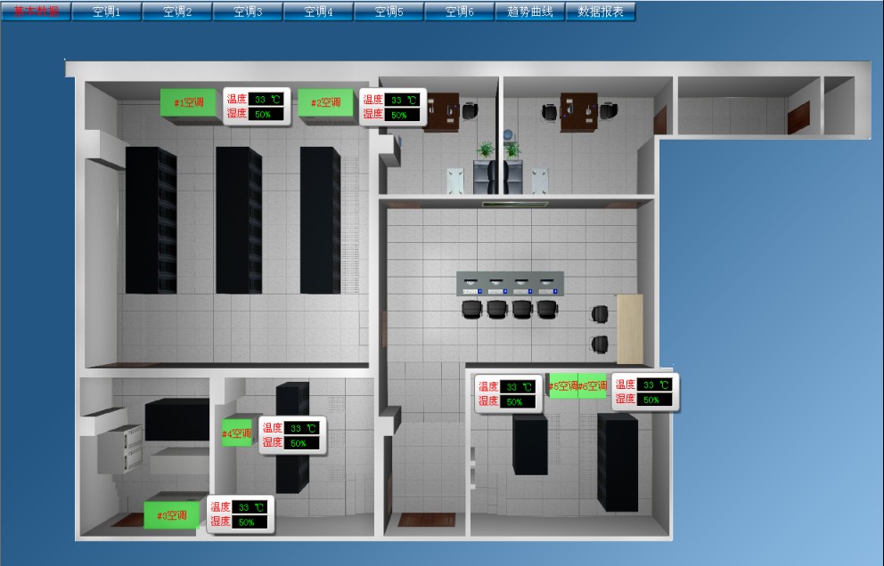 為了解決上述問題,本系統(tǒng)的設計和建設目的是實時監(jiān)測機房環(huán)境的各項指標,遇到機房停電、電源故障、環(huán)境溫度過高、空調運行異常、空調停機、非法闖入、火災和漏水等緊急意外情況,能夠及時記錄、查詢和自動快速報警。采用計算機、通信、網(wǎng)絡、四遙(遙測、遙信、遙控、遙視)技術,利用現(xiàn)有的Internet網(wǎng)絡環(huán)境,構成一個一體化、網(wǎng)絡化的集中監(jiān)控系統(tǒng),可以在計算機屏幕上看到監(jiān)控點的圖形畫面,了解監(jiān)控點的信息,提高機房的可靠運行能力,提升機房日常維護效率,降低維護成本和勞動強度。