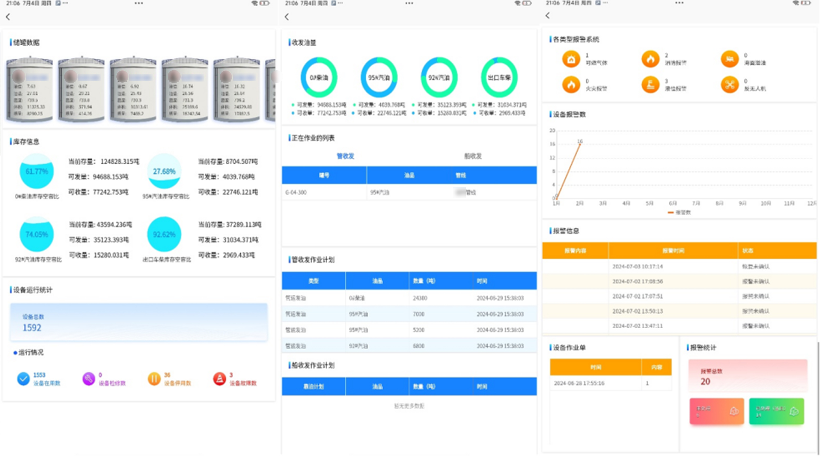 構建全局監(jiān)控平臺,覆蓋作業(yè)流程、資源狀態(tài)、生產(chǎn)數(shù)據(jù)及安防報警等環(huán)節(jié),支持生產(chǎn)報表自動生成、收發(fā)油計量統(tǒng)計、報警數(shù)據(jù)可視化分析等功能。通過省、庫級數(shù)字看板,直觀展示運營動態(tài),提升預警響應效率。