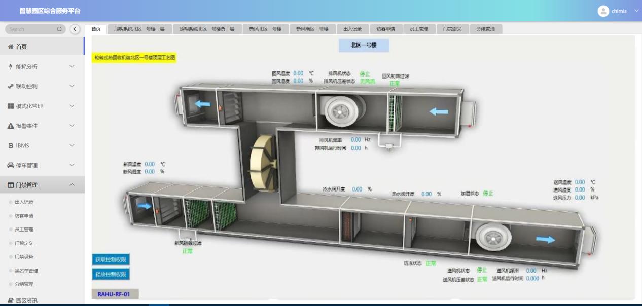 新風(fēng)及空調(diào)智能運(yùn)行:在自動(dòng)模式下,綜管平臺(tái)依據(jù)實(shí)時(shí)季節(jié)、天氣及溫度設(shè)定參數(shù),向數(shù)據(jù)接口下發(fā)風(fēng)閥、風(fēng)機(jī)、加濕等設(shè)備的控制指令,實(shí)現(xiàn)設(shè)備智能化運(yùn)行。