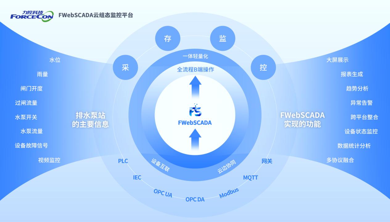 針對(duì)人工巡檢低效、能耗管理粗放、數(shù)據(jù)孤島等核心痛點(diǎn),力控云組態(tài)監(jiān)控平臺(tái)FWebSCADA深度融合物聯(lián)網(wǎng)與數(shù)字孿生技術(shù),為排水泵站量身打造“采、存、監(jiān)、控”一體化解決方案,助力排水泵站智能化運(yùn)維。