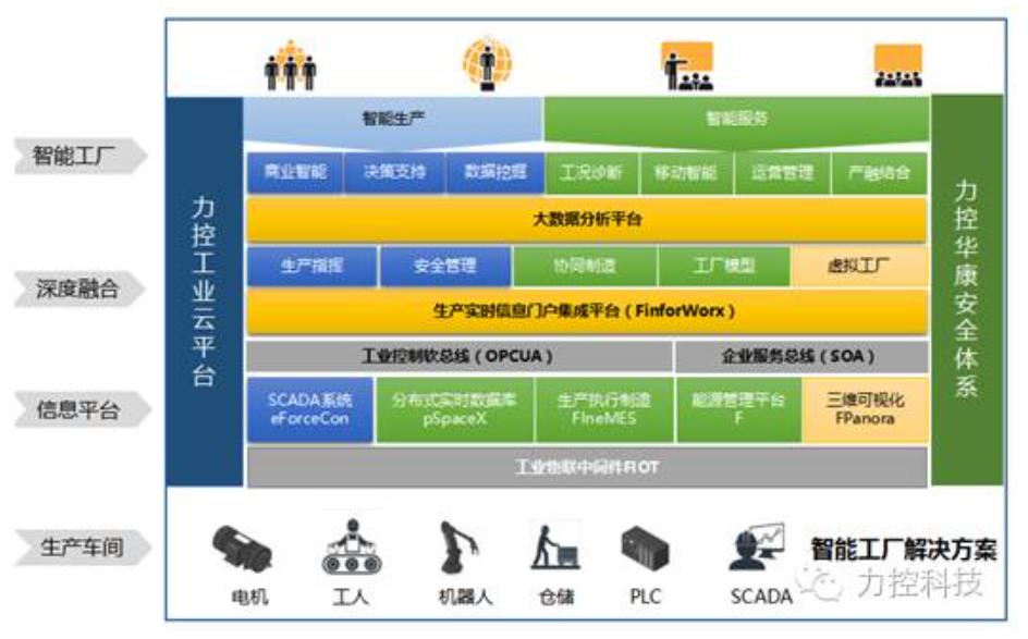 而力控科技近期推出的以O(shè)PC UA統(tǒng)一架構(gòu)的FIOT工業(yè)物聯(lián)網(wǎng)解決方案,力控智能門戶集成平臺(tái) FinforWorx、面向多屏監(jiān)控的跨平臺(tái)可視化FsmartWorx、力控工業(yè)安全隔離網(wǎng)關(guān) pSafetylink、力控工業(yè)安全防火墻 H-ISG于一體的力控智能工廠解決方案,更是瞄準(zhǔn)了“生產(chǎn)過(guò)程智能化”多個(gè)環(huán)節(jié),完成企業(yè)信息化的綜合集成。綜合利用ForceCon平臺(tái)建設(shè)信息系統(tǒng)的深度融合服務(wù)于企業(yè)完成數(shù)字化、智能化轉(zhuǎn)型,建設(shè)智能工廠生態(tài)系統(tǒng)。