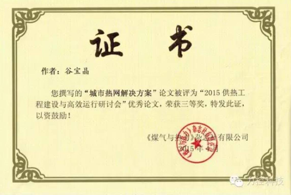 “力控科技城市熱網(wǎng)解決方案”集公司十年來在供熱節(jié)能方面經(jīng)驗之大成,可實現(xiàn)從熱源到管網(wǎng)再到換熱站的實時生產(chǎn)數(shù)據(jù)的監(jiān)控管理,直觀、高效的調(diào)整各種參數(shù),準(zhǔn)確、及時的處理供熱事故,科學(xué)分析歷史數(shù)據(jù),制定最佳的調(diào)度方案和生產(chǎn)運行計劃,從而達到科學(xué)調(diào)度、節(jié)能增效、提前預(yù)警、減少事故的效果。該方案得到與會專家的一致肯定,獲得了優(yōu)秀論文三等獎的榮譽。
