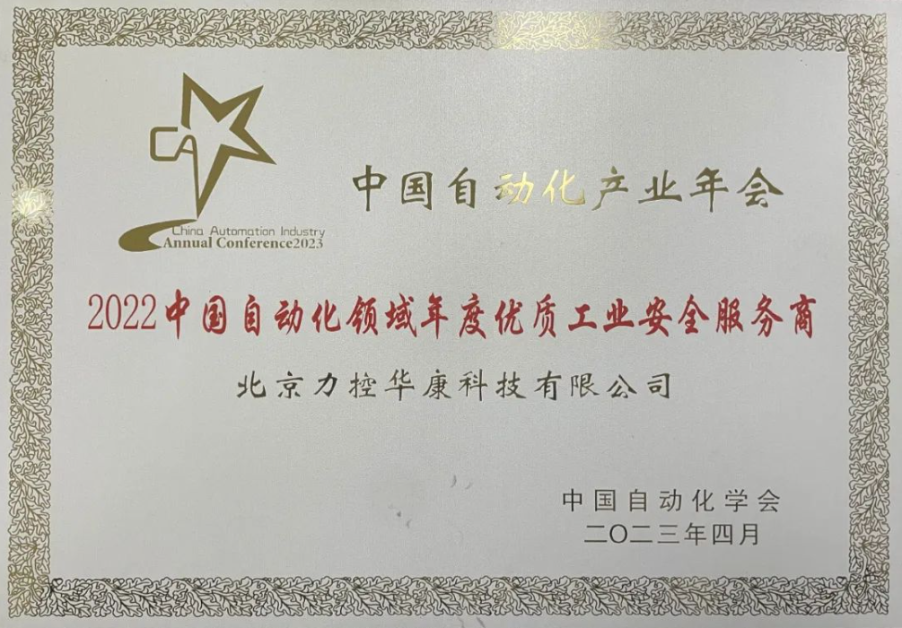 ? 北京力控華康科技有限公司 獲得 「2022中國自動化領(lǐng)域年度優(yōu)質(zhì)工業(yè)安全服務(wù)商」