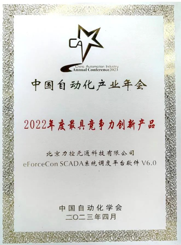 ? eForceCon SCADA系統(tǒng)調(diào)度平臺軟件 V6.0 獲得「2022年度最具競爭力創(chuàng)新產(chǎn)品」