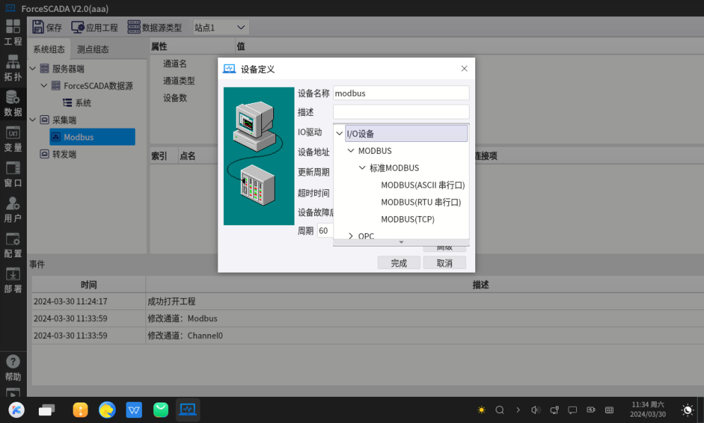 在ForceSCADA中,為用戶(hù)提供了Modbus協(xié)議的采集驅(qū)動(dòng),只需要進(jìn)行簡(jiǎn)單的配置就可以完成數(shù)據(jù)的采集,配合ForceSCADA組態(tài)軟件進(jìn)行數(shù)據(jù)的展示以及處理。