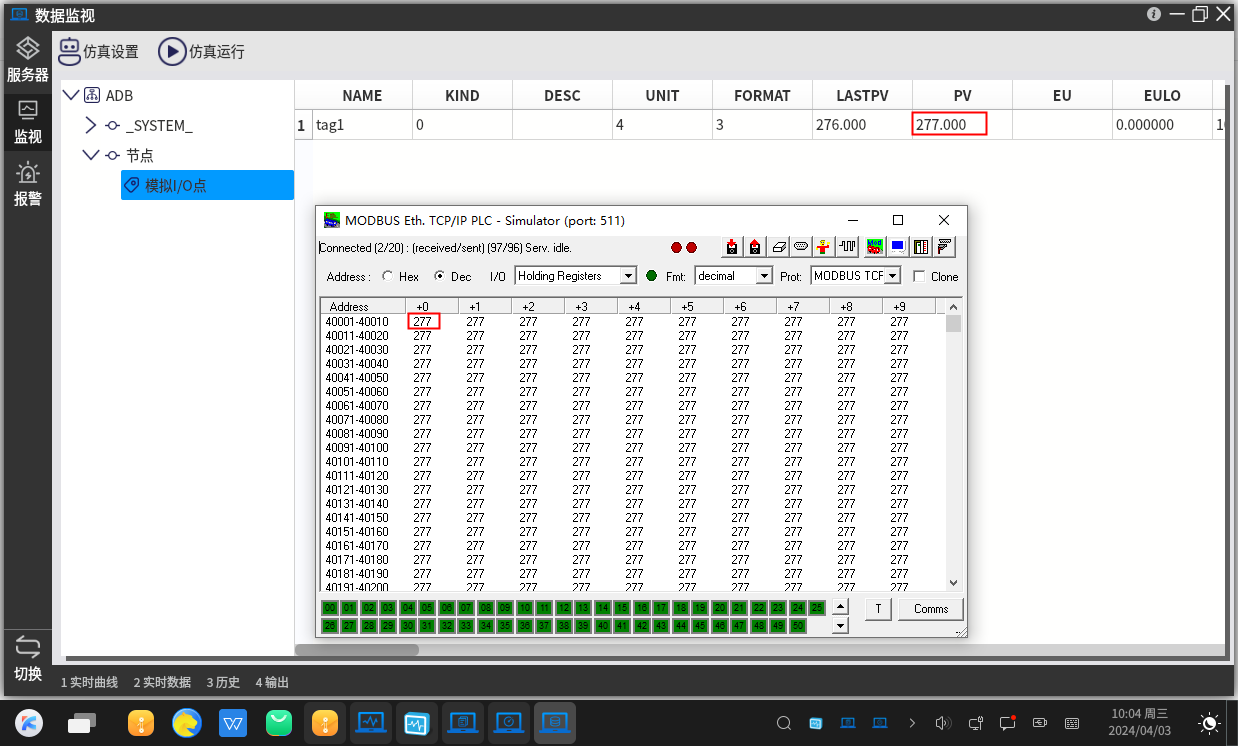 配置完成后,可以直接在ForceSCADA數(shù)據(jù)監(jiān)視中查看現(xiàn)場(chǎng)設(shè)備的實(shí)時(shí)和歷史數(shù)據(jù)。