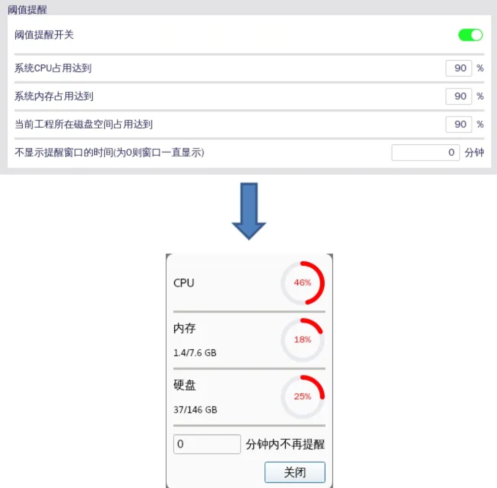 靈活配置閾值參數(shù):精準貼合用戶實際使用需求,可以靈活配置各項參數(shù)的閾值,包括CPU使用率、內(nèi)存占用率、硬盤空間等。
