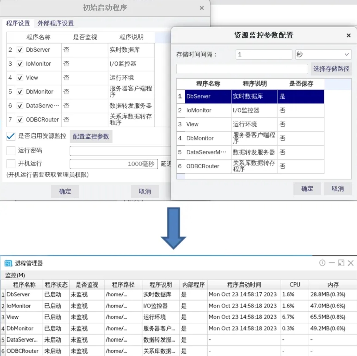 統(tǒng)一管理軟件服務(wù):統(tǒng)一管理軟件所有服務(wù),提供程序運行狀態(tài)監(jiān)測,同時對這些程序進行啟動、停止和監(jiān)視,資源監(jiān)控可顯示各項程序啟停時間、運行狀態(tài)、CPU、內(nèi)存等信息,確保管理者對工業(yè)現(xiàn)場的資源狀況了如指掌。