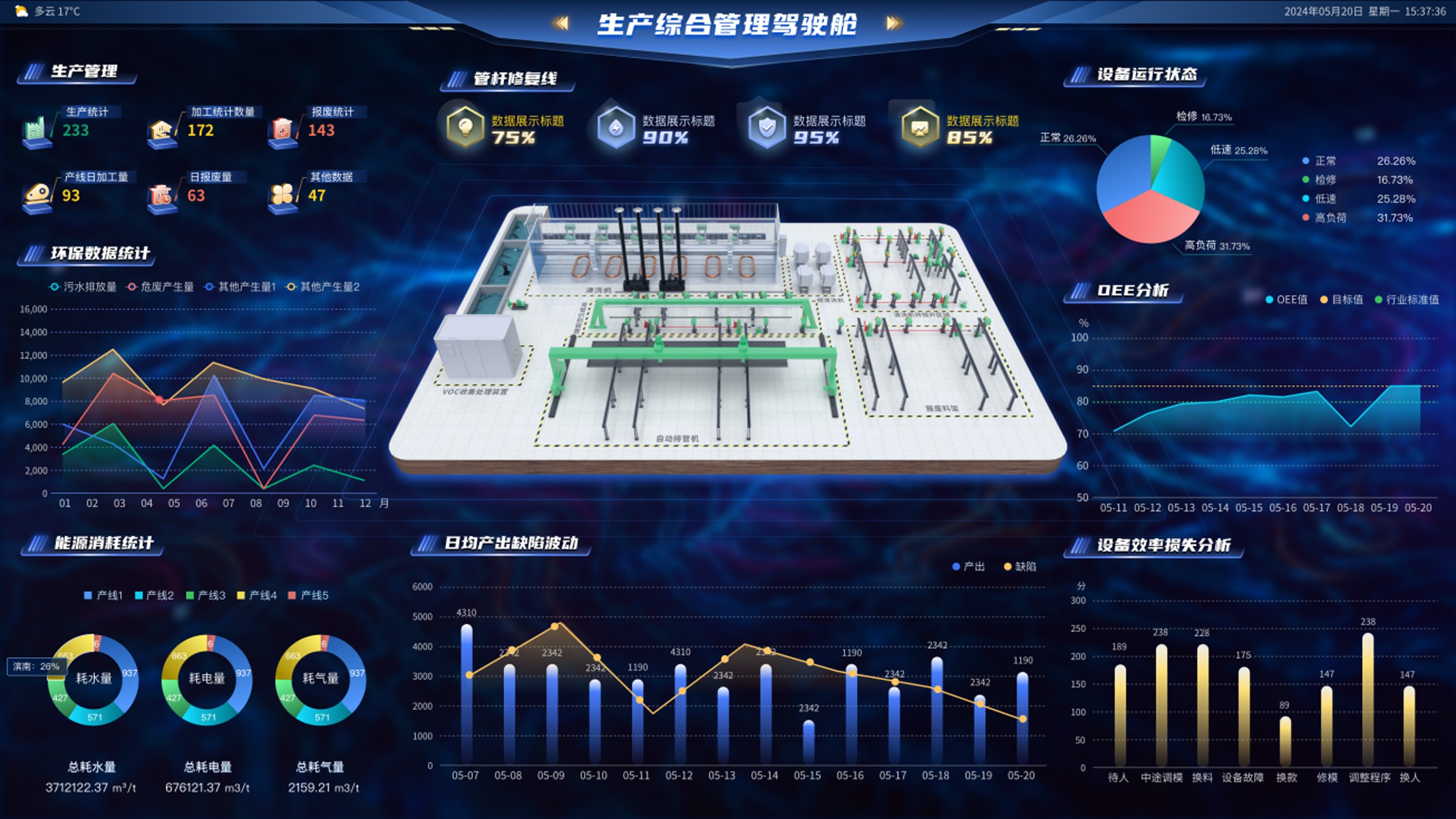 OEE計算服務(wù)能夠?qū)崿F(xiàn)可用性、性能和質(zhì)量指標(biāo)的綜合計算,形成覆蓋設(shè)備、生產(chǎn)線、車間等多層級的OEE綜合分析,運用大屏可視化、報表和數(shù)字孿生等手段實現(xiàn)數(shù)據(jù)可視化展示。