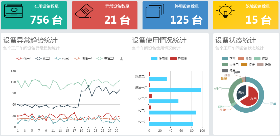 對現(xiàn)場所有的設(shè)備做管理,實(shí)現(xiàn)生產(chǎn)設(shè)備從啟用、建檔、維護(hù)保養(yǎng)、檢維修、檢定、停用、報廢等全生命周期的管理。記錄設(shè)備的生命周期、使用周期、保養(yǎng)周期、點(diǎn)檢周期、維修記錄等信息,提供設(shè)備的稼動率、設(shè)備實(shí)時狀態(tài),讓設(shè)備的全生命周期和設(shè)備的實(shí)時信息以最直觀的形式展現(xiàn)在管理人員面前,便于管理人員對設(shè)備做計(jì)劃和管理,提高設(shè)備的使用效率;