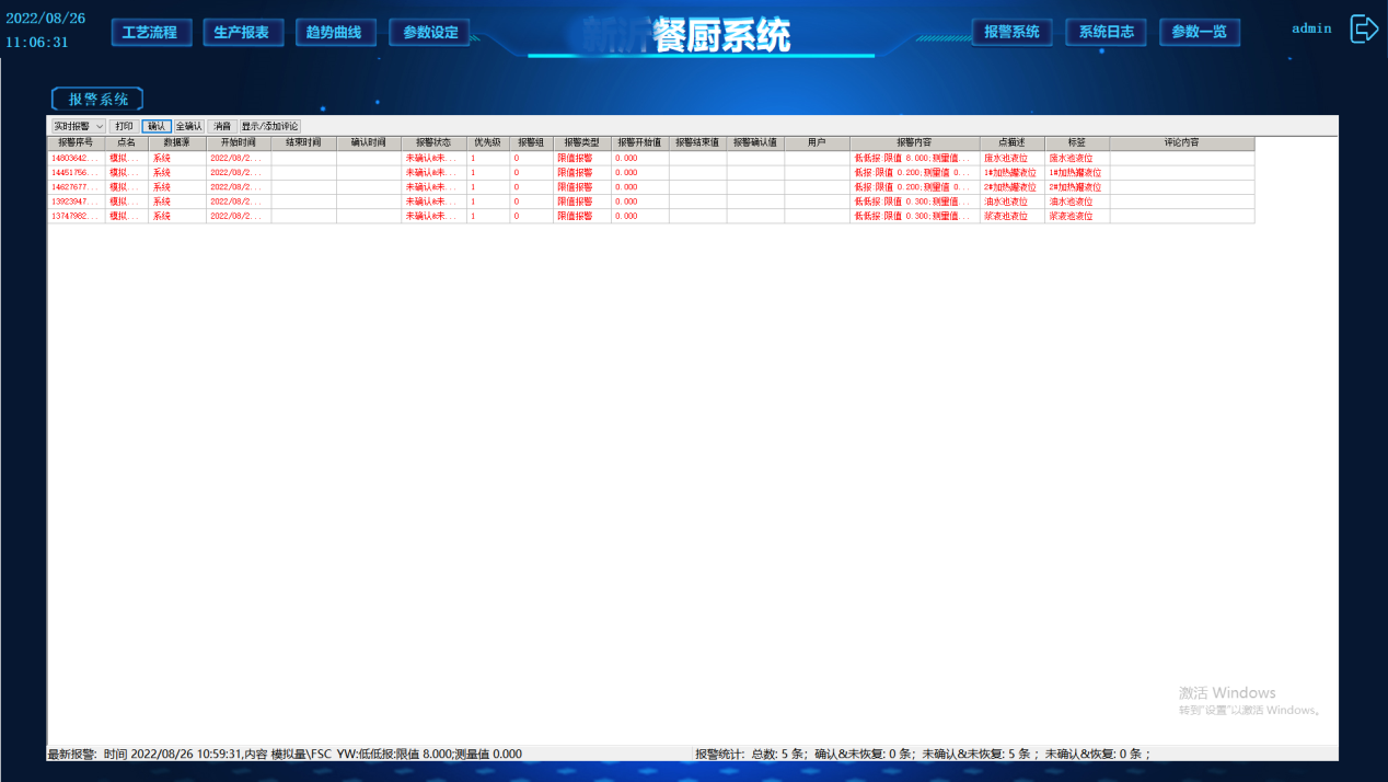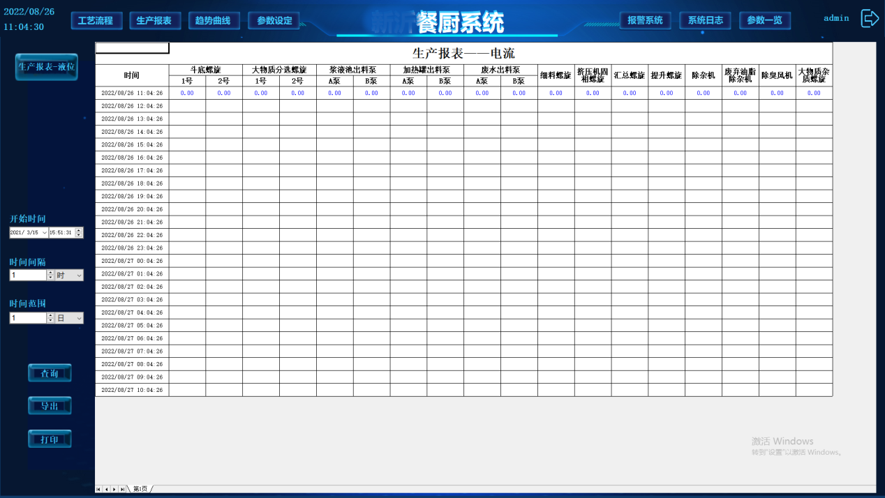 系統(tǒng)自動記錄各種工藝運(yùn)行數(shù)據(jù),將所有數(shù)據(jù)歸納匯總形成報表,報表可定時打印或召喚打印,操作員也可通過菜單或按鈕進(jìn)入報表畫面查看歷史報表。