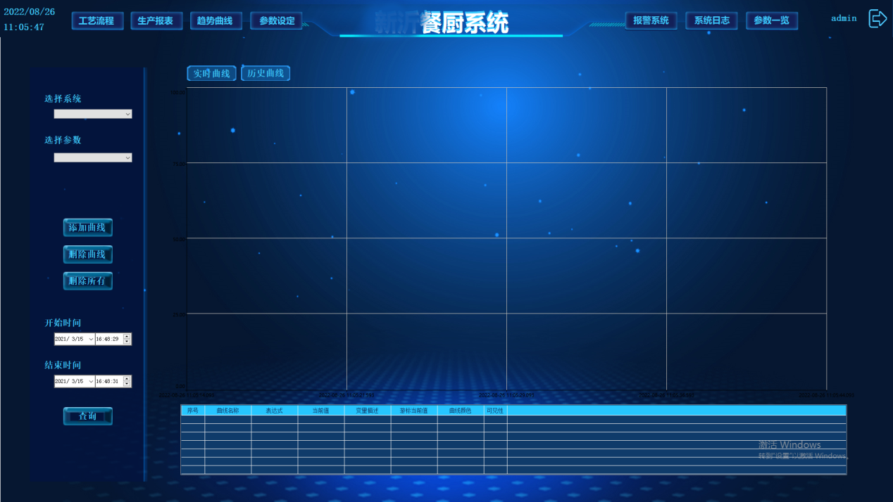 操作員可通過菜單或按鈕進(jìn)入實(shí)時曲線畫面或歷史曲線畫面,可選擇需要的工藝參數(shù)查看實(shí)時曲線或歷史曲線,可同時顯示多條實(shí)時曲線,可對曲線進(jìn)行放大或縮小,可任意選擇需要查看的時間段。