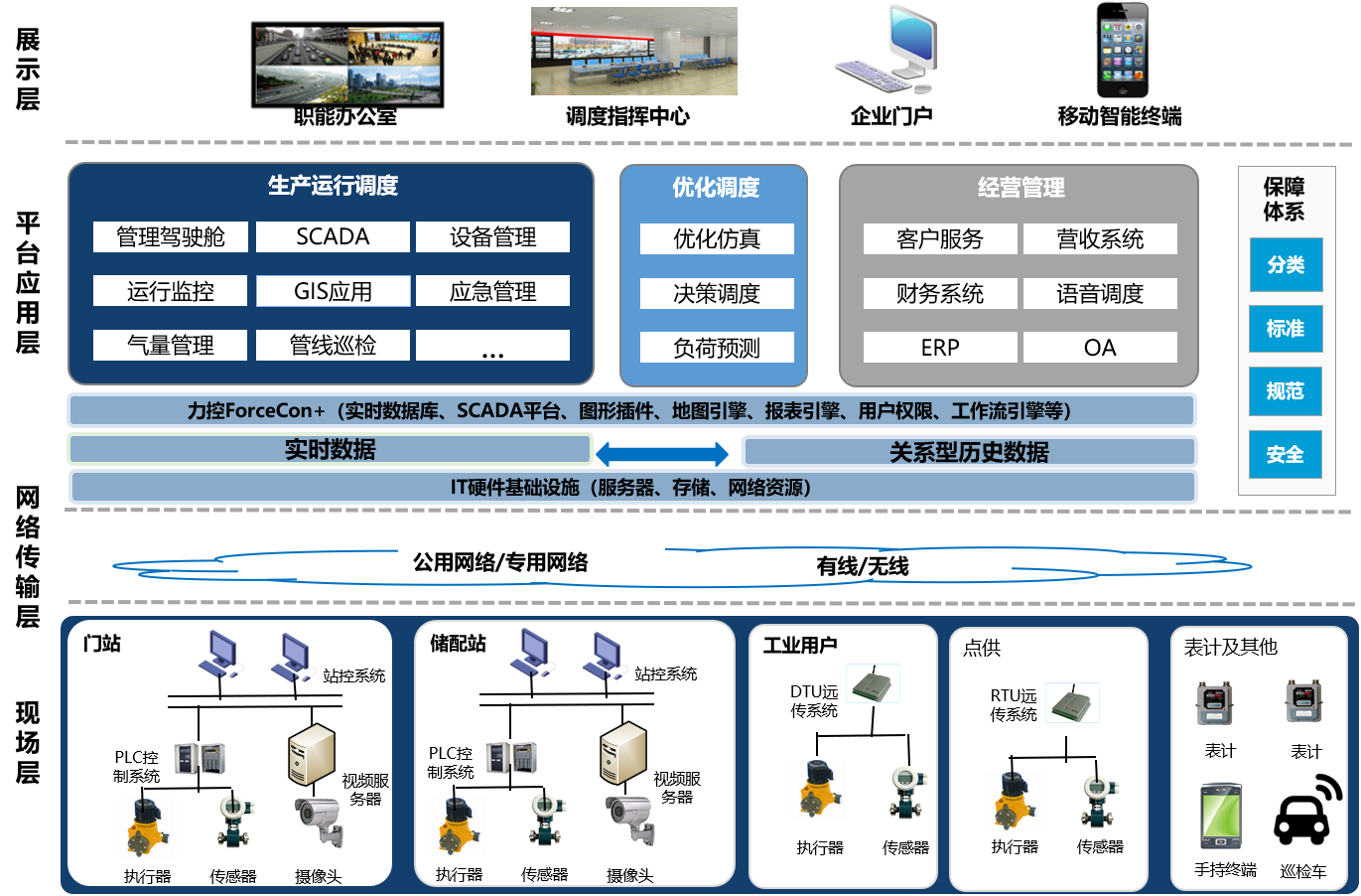 力控ForceCon+產(chǎn)品家族豐富的產(chǎn)品線構(gòu)成了豐富工業(yè)互聯(lián)網(wǎng)解決方案,在企業(yè)管控一體化綜合集成層面,提供從自動(dòng)化監(jiān)控到生產(chǎn)信息化調(diào)度決策的企業(yè)管理與控制軟件及工控信息安全產(chǎn)品,構(gòu)成完整的智能工廠縱向集成解決方案,實(shí)現(xiàn)企業(yè)生產(chǎn)調(diào)度指揮與在線智慧運(yùn)營(yíng)管理。