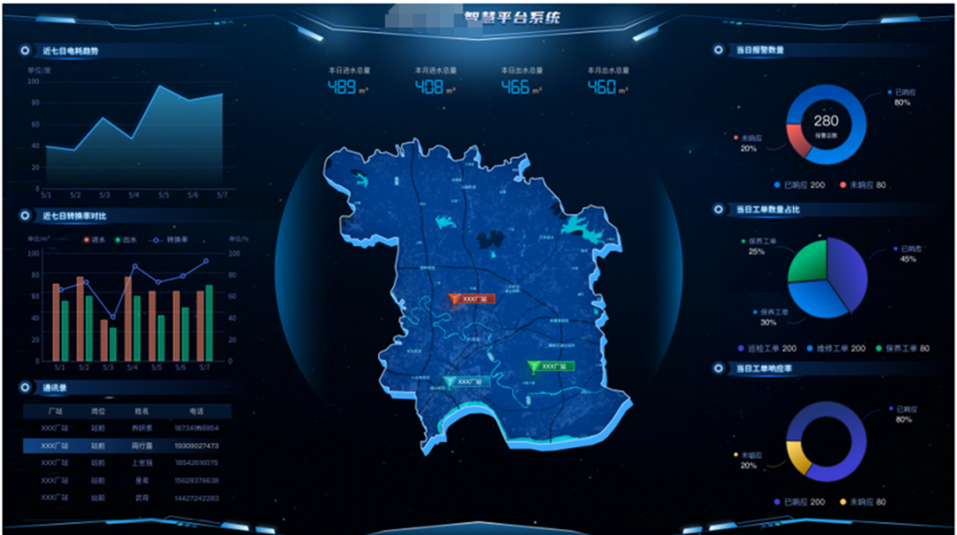 推動可持續(xù)發(fā)展泵站駕駛艙是智慧運維系統(tǒng)的中樞,集成了實時監(jiān)測、數(shù)據(jù)分析、應(yīng)急指揮等核心功能。設(shè)計簡潔直觀,大屏幕可展示關(guān)鍵數(shù)據(jù),支持從安全生產(chǎn)、運營目標、管理KPI等多個維度進行日常運行監(jiān)測管理,便于管理者快速捕捉泵站運行狀態(tài),并針對突發(fā)事件進行應(yīng)急指揮調(diào)度管理。