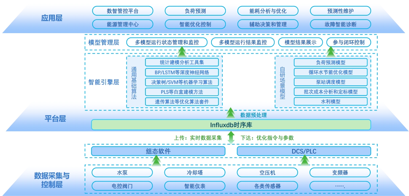 力控泵站AI節(jié)能優(yōu)化調(diào)控系統(tǒng)方案結(jié)合水泵理論知識(shí)、工業(yè)AI技術(shù)和互聯(lián)網(wǎng)技術(shù),基于實(shí)際工況運(yùn)行數(shù)據(jù)以及分級(jí)調(diào)度規(guī)劃,建立泵組效能模型和泵站調(diào)度模型,實(shí)現(xiàn)水泵群精準(zhǔn)優(yōu)化調(diào)控和最優(yōu)能效,從而實(shí)現(xiàn)泵房高效及安全運(yùn)行,助力企業(yè)實(shí)現(xiàn)節(jié)能降耗、向資源節(jié)約型經(jīng)濟(jì)轉(zhuǎn)型升級(jí):